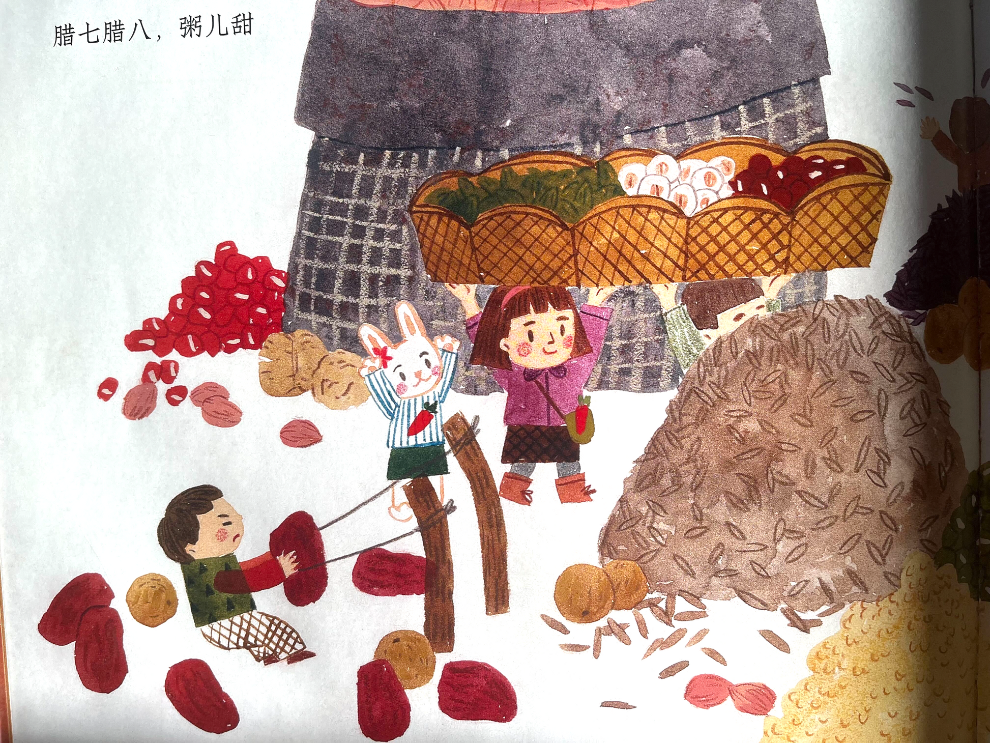 我们多久没有认认真真为一个节日做准备了?不妨就在这一个春节,好好和孩子一起准备吧。从腊月初八熬制腊八粥开始,到正月初一迎来春节,每一天都变成具有特殊意义的时间节点。《腊月歌》这首北方童谣朗朗上口,充满童趣和浓厚的节日气氛,又在画家笔下焕发新的生命,把传统节日民俗生动地呈现在孩子们眼前。